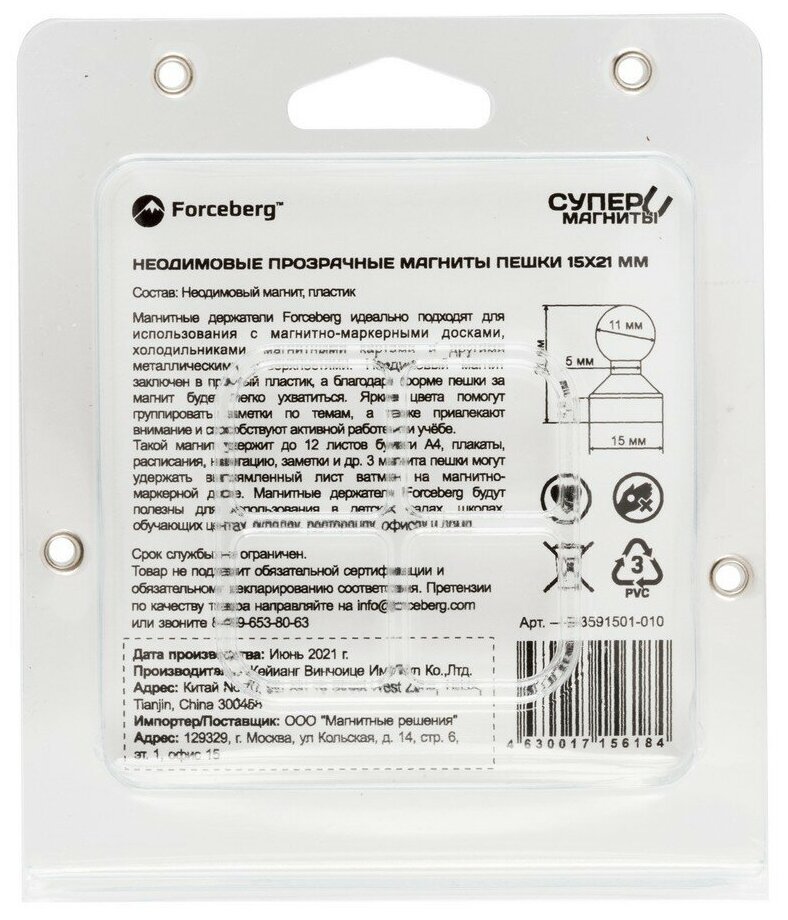 Forceberg Набор прозрачных неодимовых магнитов для магнитной доски Пешка 15x21 мм, 10 шт 9-3591550-010