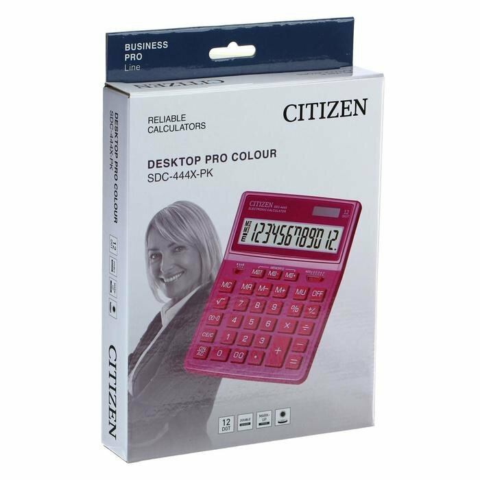 Калькулятор настольный Citizen SDC-444X, 12-разрядный, двойное питание, розовый (SDC444XRPKE)