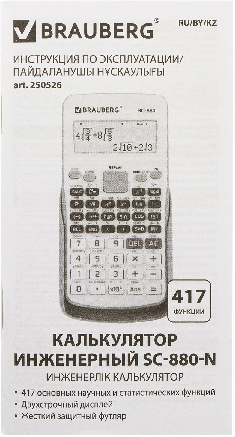 Калькулятор инженерный Brauberg двухстрочный, SC-880-N, 417 функций, 10+2 разрядов, белый (250526)