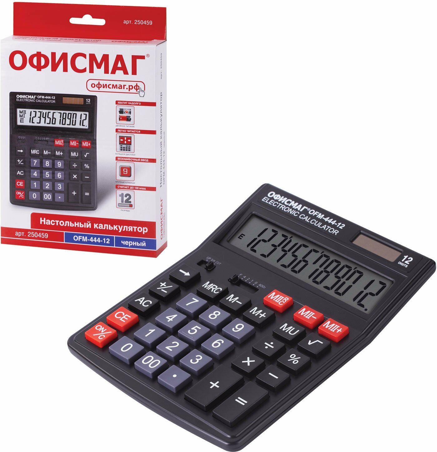 Купить Калькулятор настольный Офисмаг (199х153 мм) 12 разрядов, двойное питание, черный (250459)