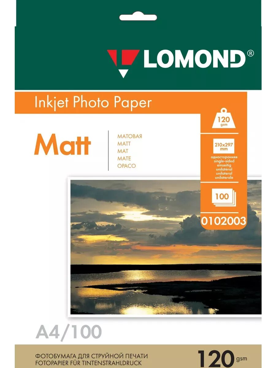 Фотобумага для струйной печати А4, 100 листов LOMOND, 120 г/м2, односторонняя, матовая (0102003)