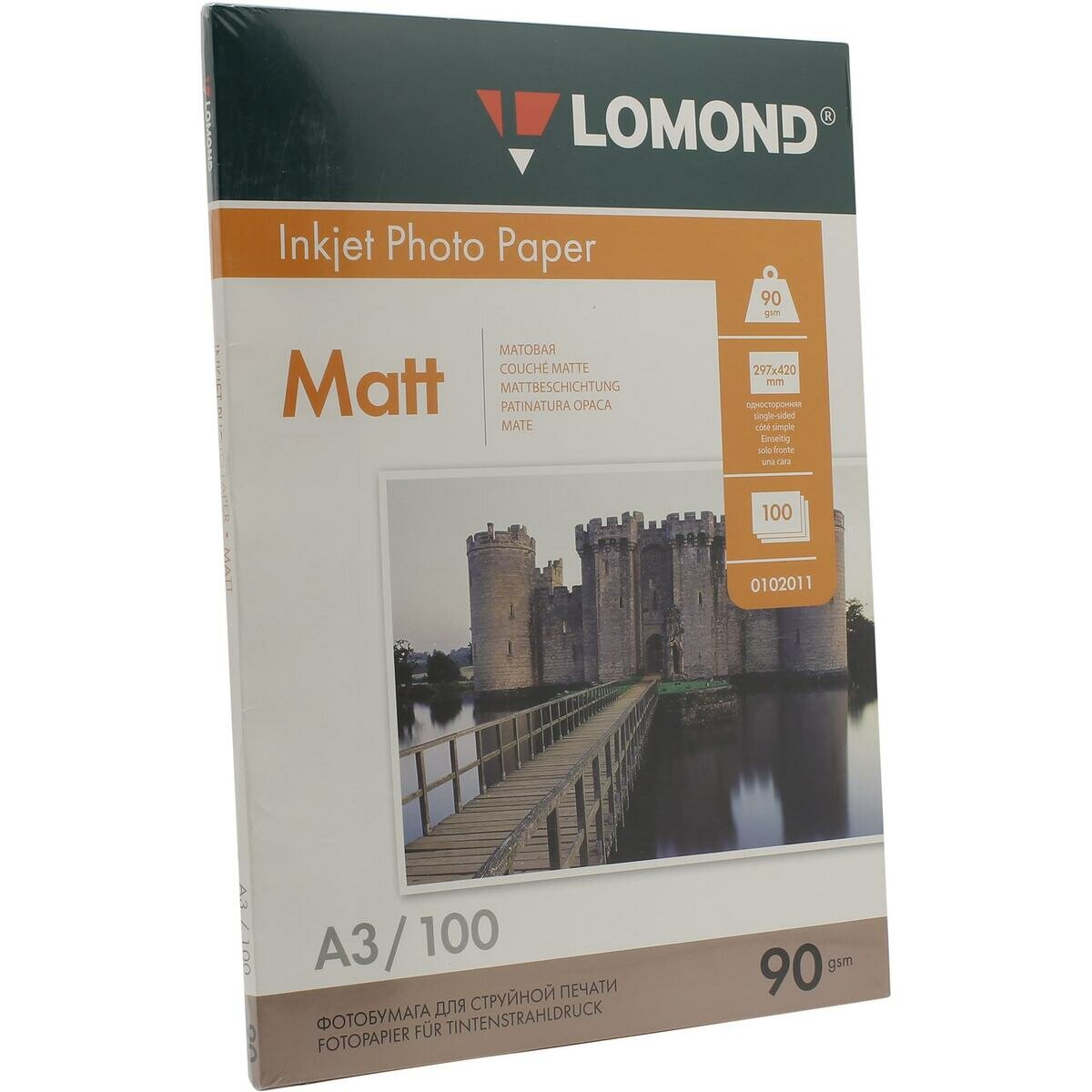 Фотобумага для струйной печати А3, 100 листов LOMOND, 90 г/м2, односторонняя, матовая (0102011)