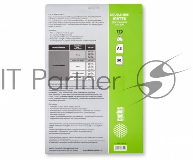 Cactus CS-MA317050DS Фотобумага CS-MA317050DS матовая двухсторонняя А3 170 г м2 50 листов