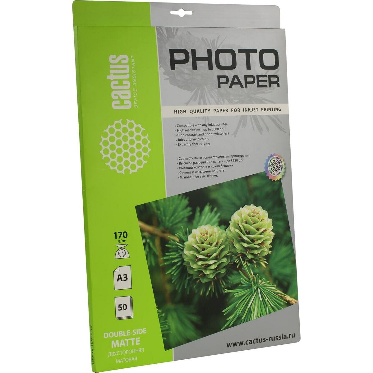 Фотобумага Cactus CS-MA317050DS, матовая, А3, 170 г/м2, 50 листов