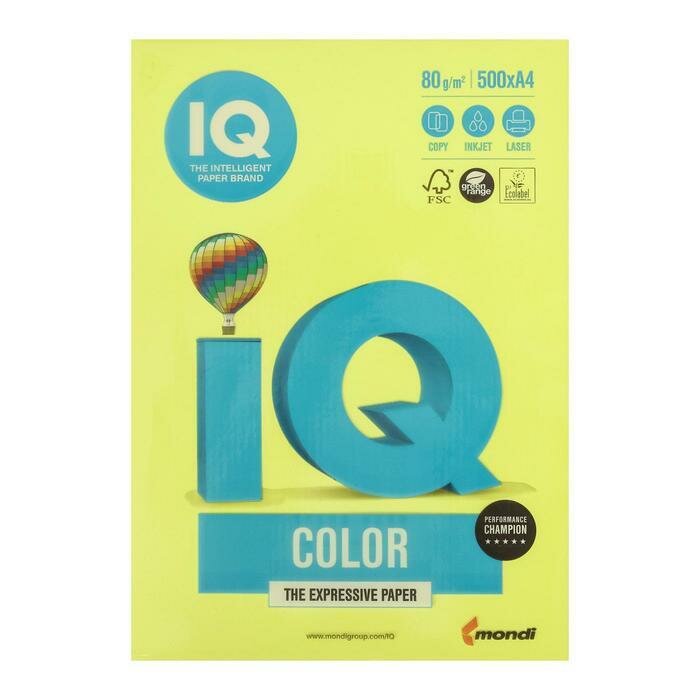 Бумага цветная А4 IQ Color неон желтая, 80 г/кв. м, 500 листов (NEOGB)