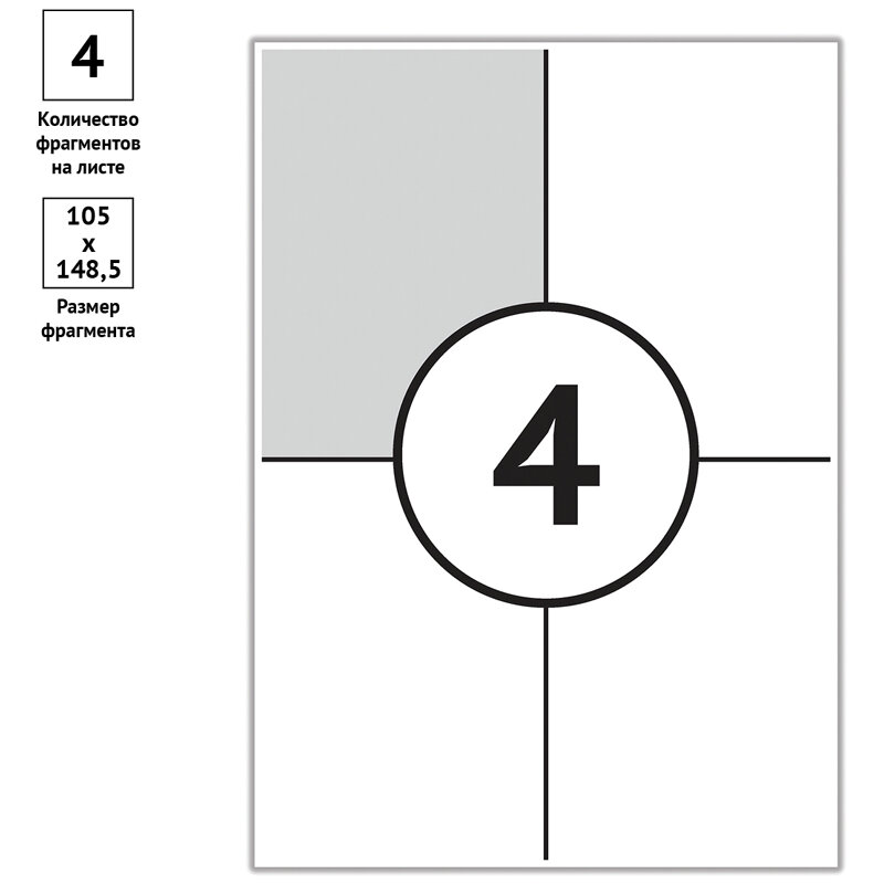 Этикетки самоклеящиеся А4 100л. OfficeSpace, белые, 04 фр. (105×148.5), 70г/м2