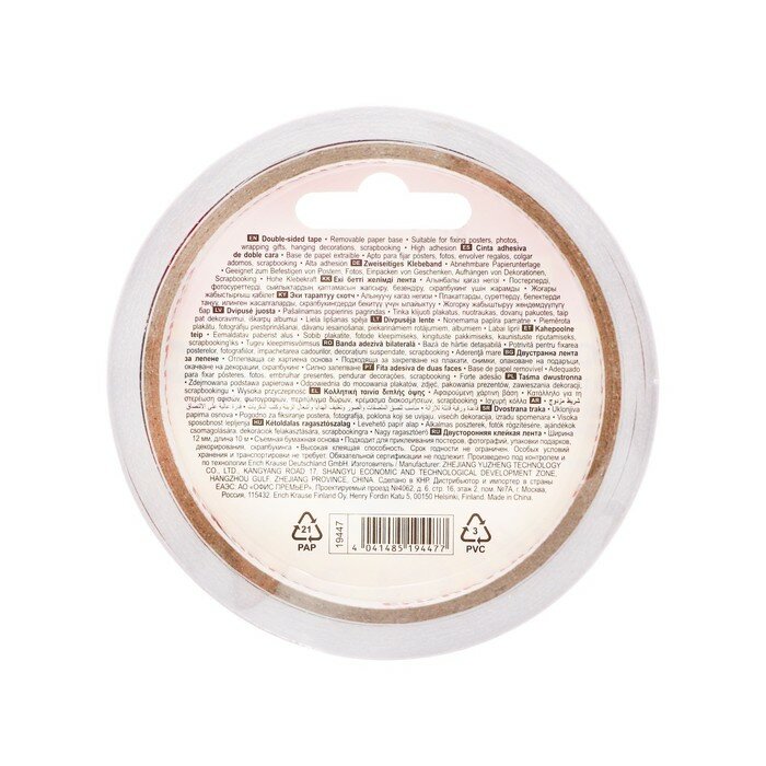 Клейкая двухсторонняя лента 12 мм х 10 м, бумажная основа, ERICH KRAUSE, 19447, 224634C