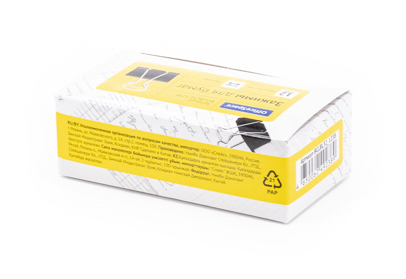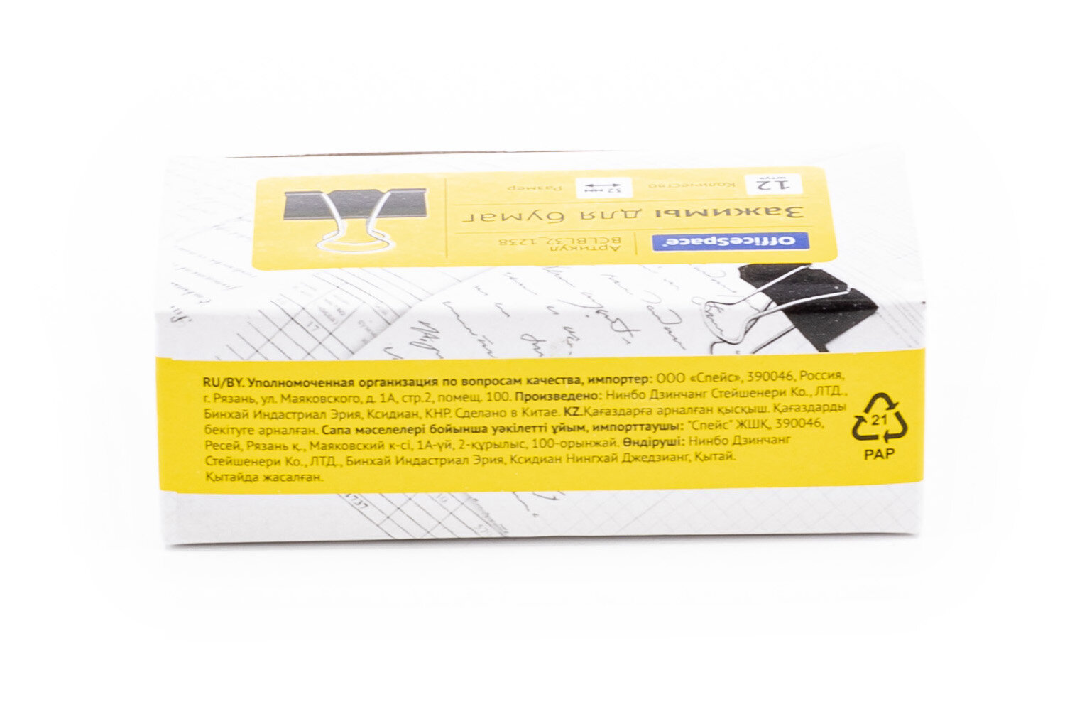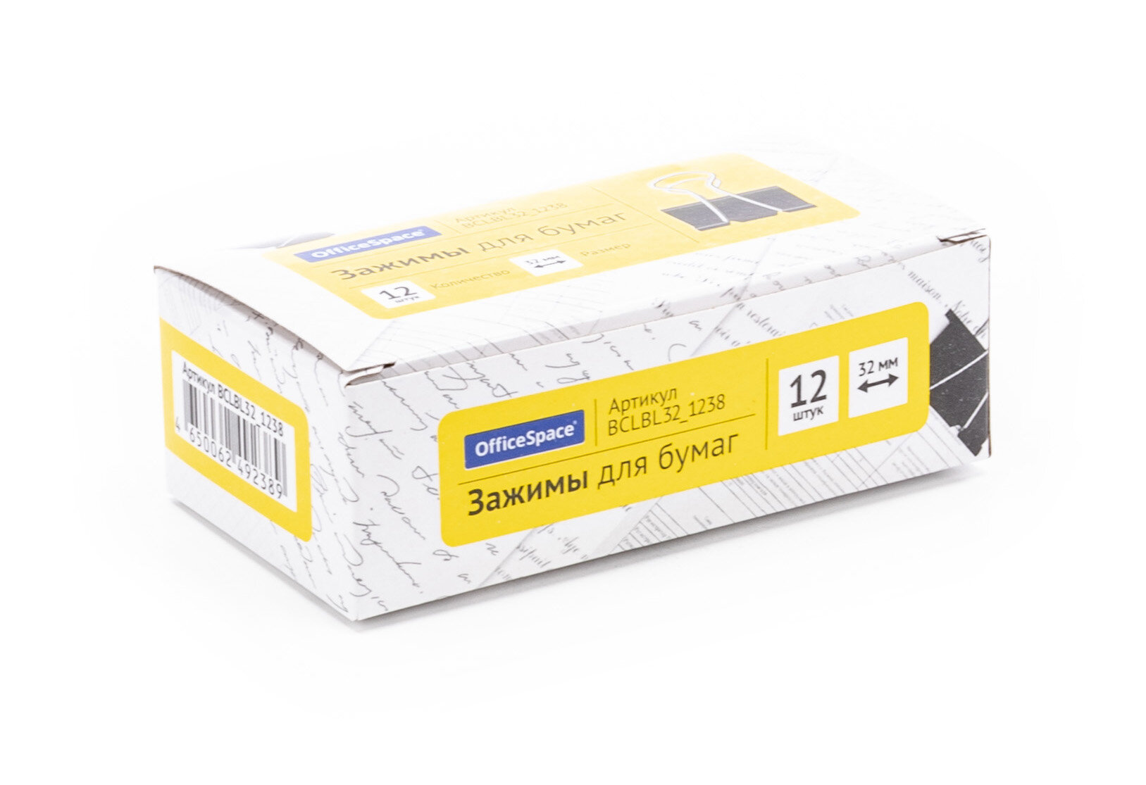 Зажимы для бумаг 32мм, OfficeSpace, (12шт. в упаковке), черные, картонная коробка BCLBL32_1238