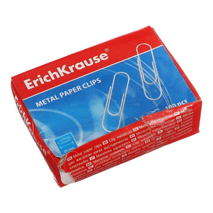 Скрепки канцелярские 33 мм, без покрытия, 100 штук, Erich Krause