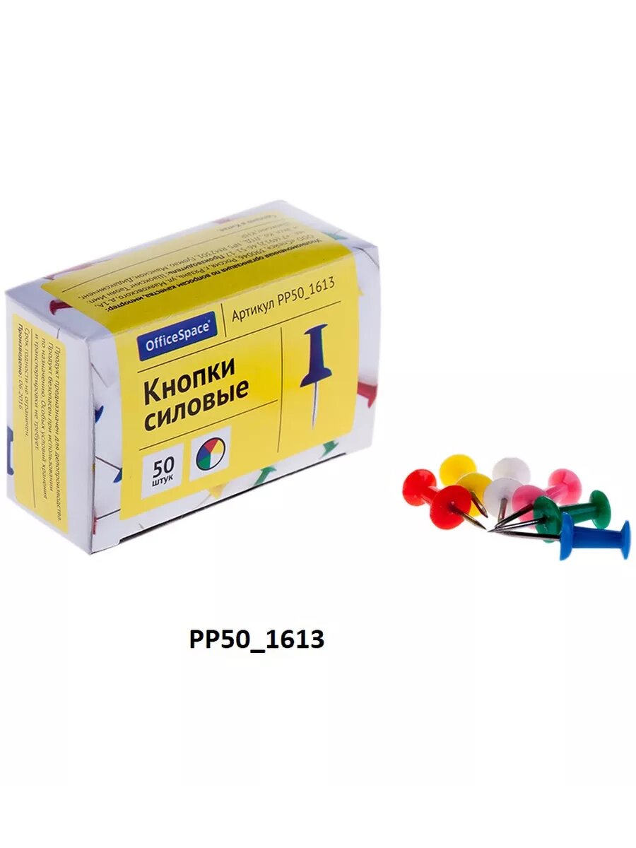 Кнопки силовые OfficeSpace, цветные, 50шт., картонная упаковка (PP50_1613)