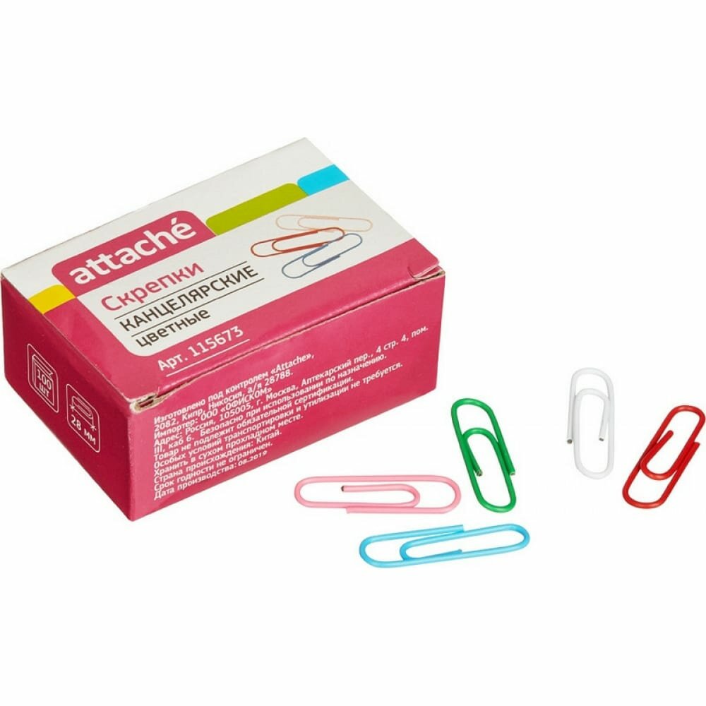 Купить Скрепки 28 мм Attache С28-100П, цветные, 100шт/уп
