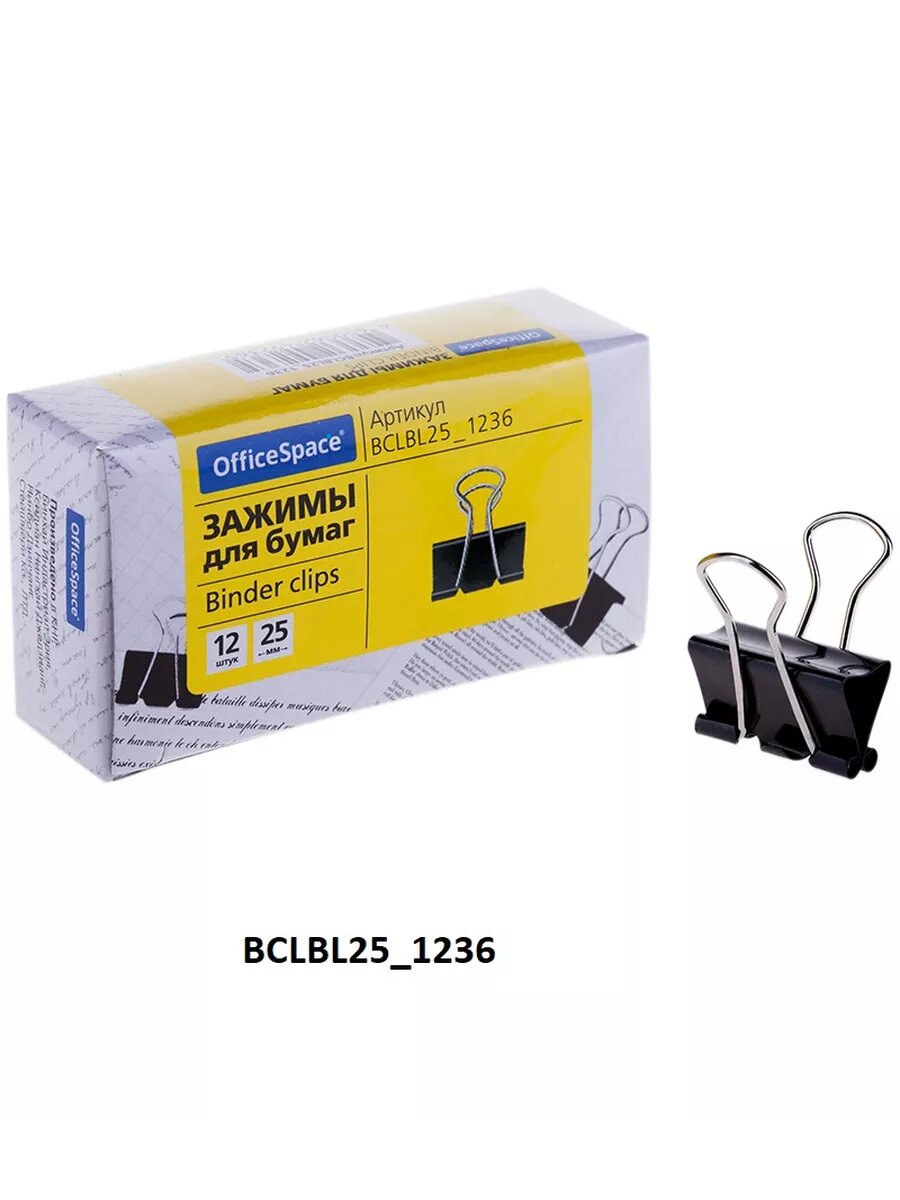 Зажимы для бумаг 25мм, OfficeSpace, 12шт., черные, картонная коробка ( Артикул 178800 )