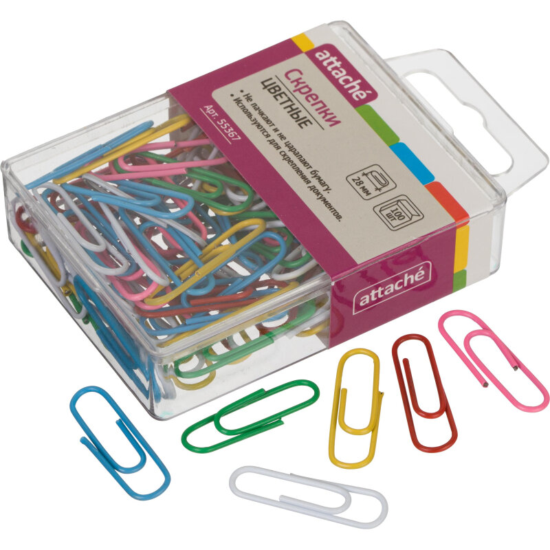 Скрепки канцелярские цветные Attache, 28 мм, 100 штук в упаковке