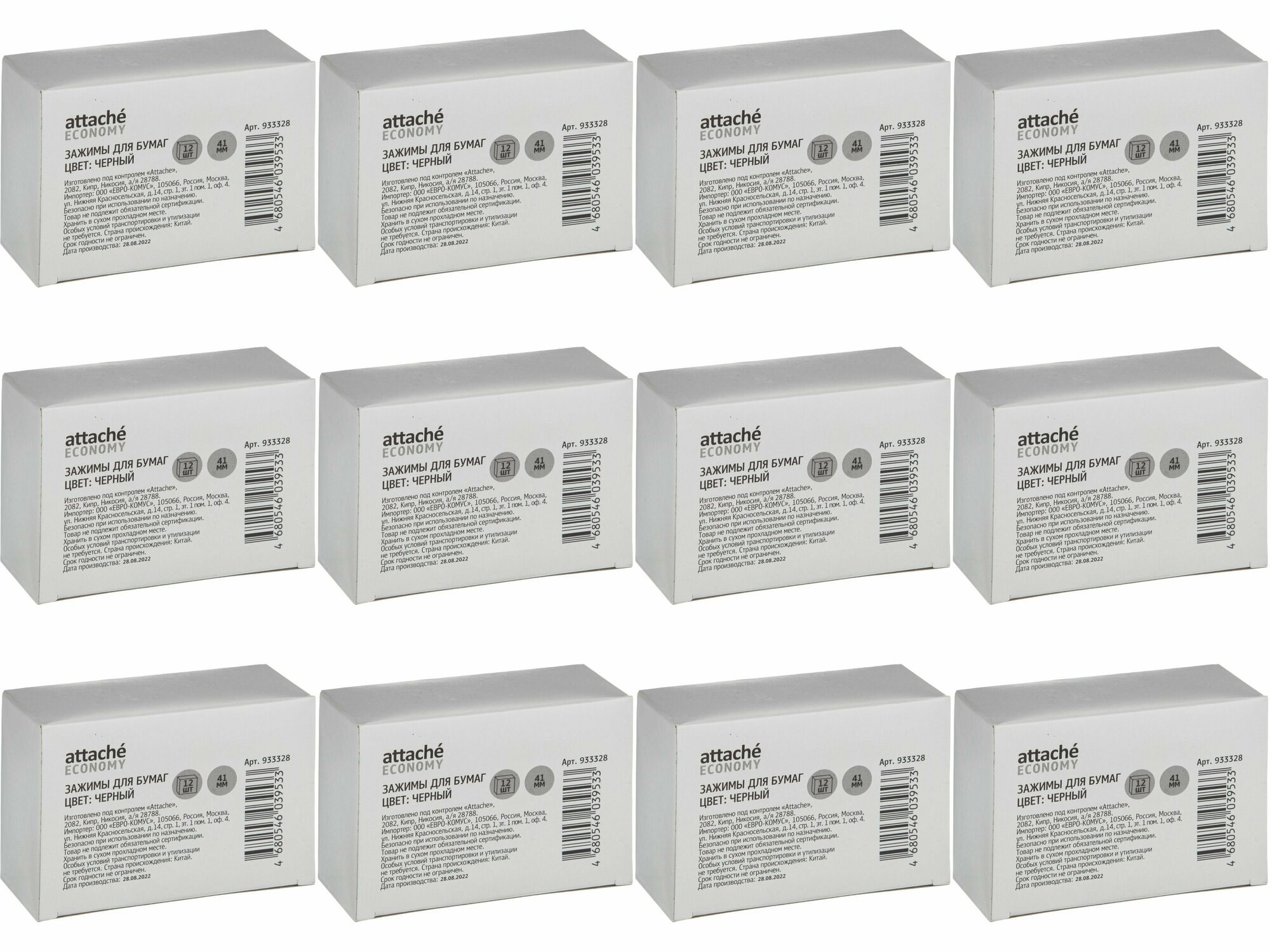 Attache Зажим для бумаг 41мм 12шт/уп Economy, в карт,кор, цвет чёрный 933328