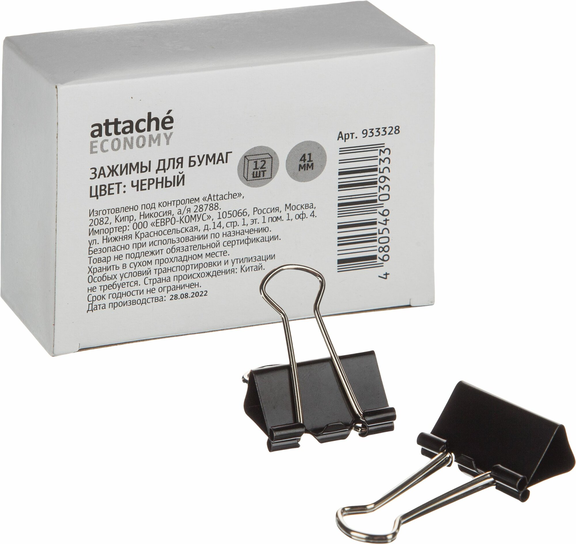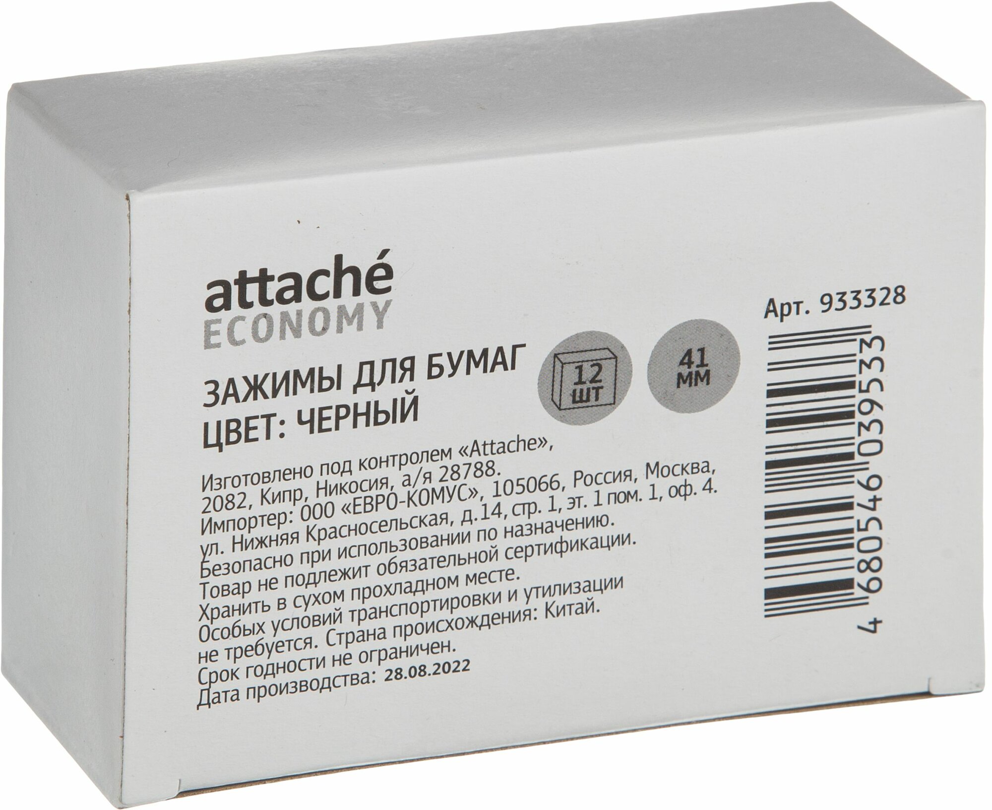 Зажимы для бумаг ATTACHE ECONOMY 41мм 12шт/уп Attache Economy, в карт,кор, цвет черный