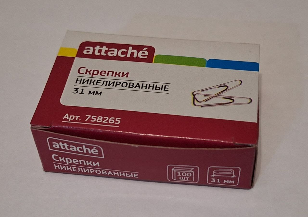 Скрепки Attache 31 мм, никелированные, 100 штук (758265)