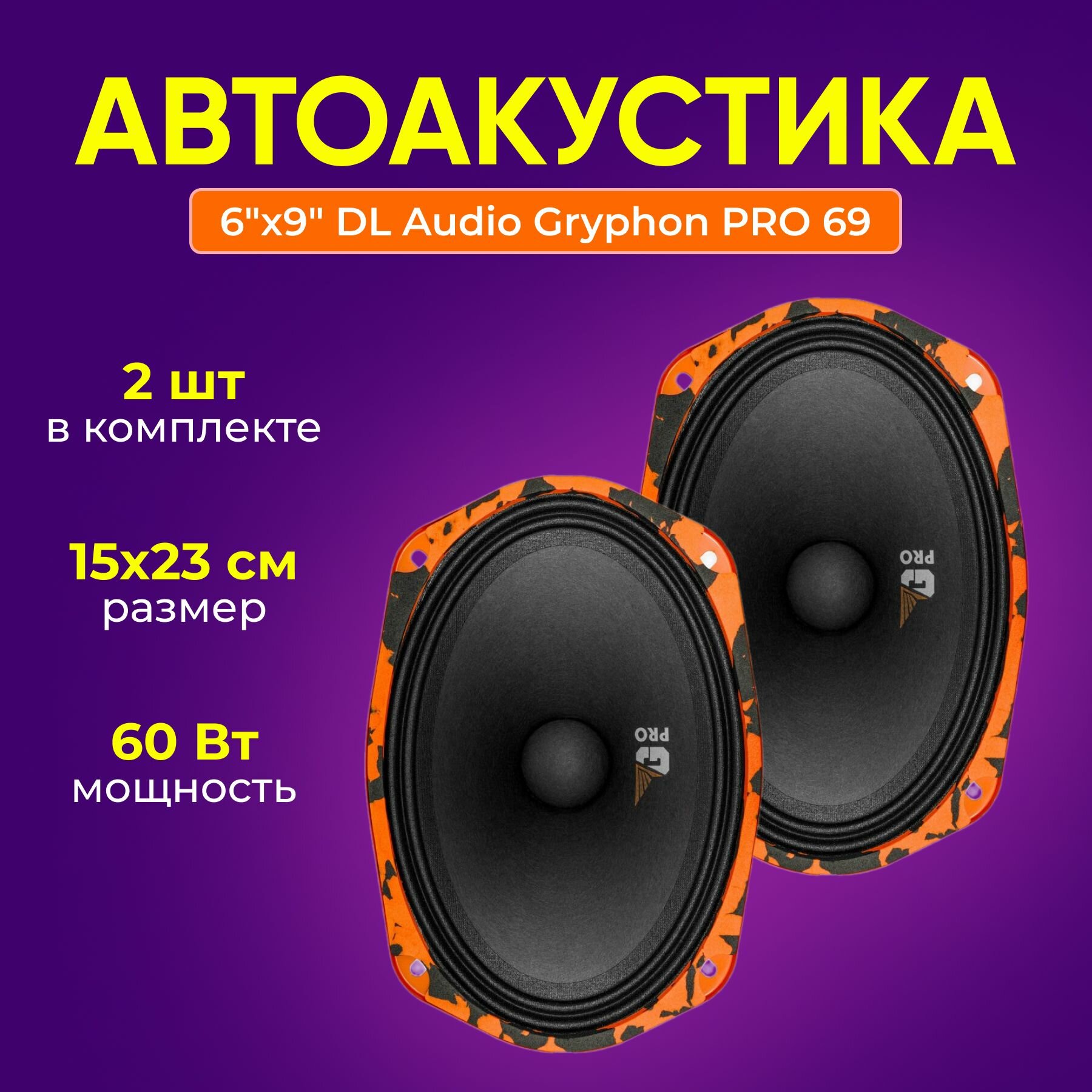 Автомобильная акустика DL Audio Gryphon Pro 69 (пара) , Автомобильные колонки, блины, динамики 6х9. (8") DL Audio ( миды, эстрадная, громкая)