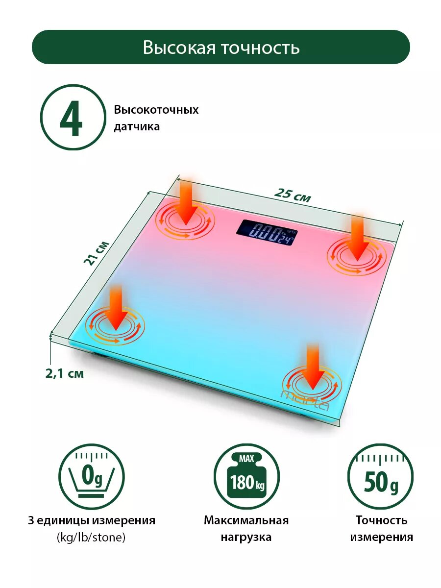 Весы напольные умные MARTA MT-SC1691 зелено-розовый