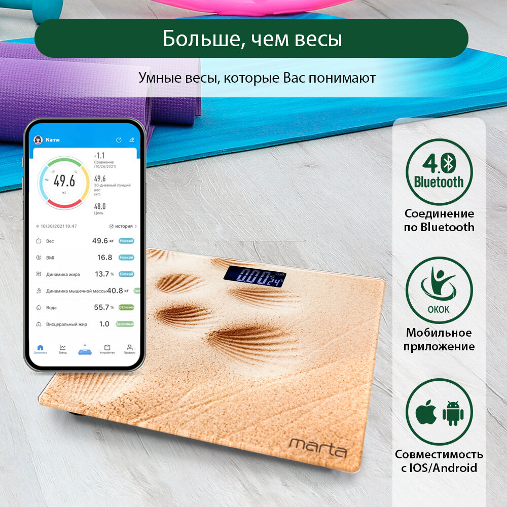 Весы напольные умные MARTA MT-SC1696 песок