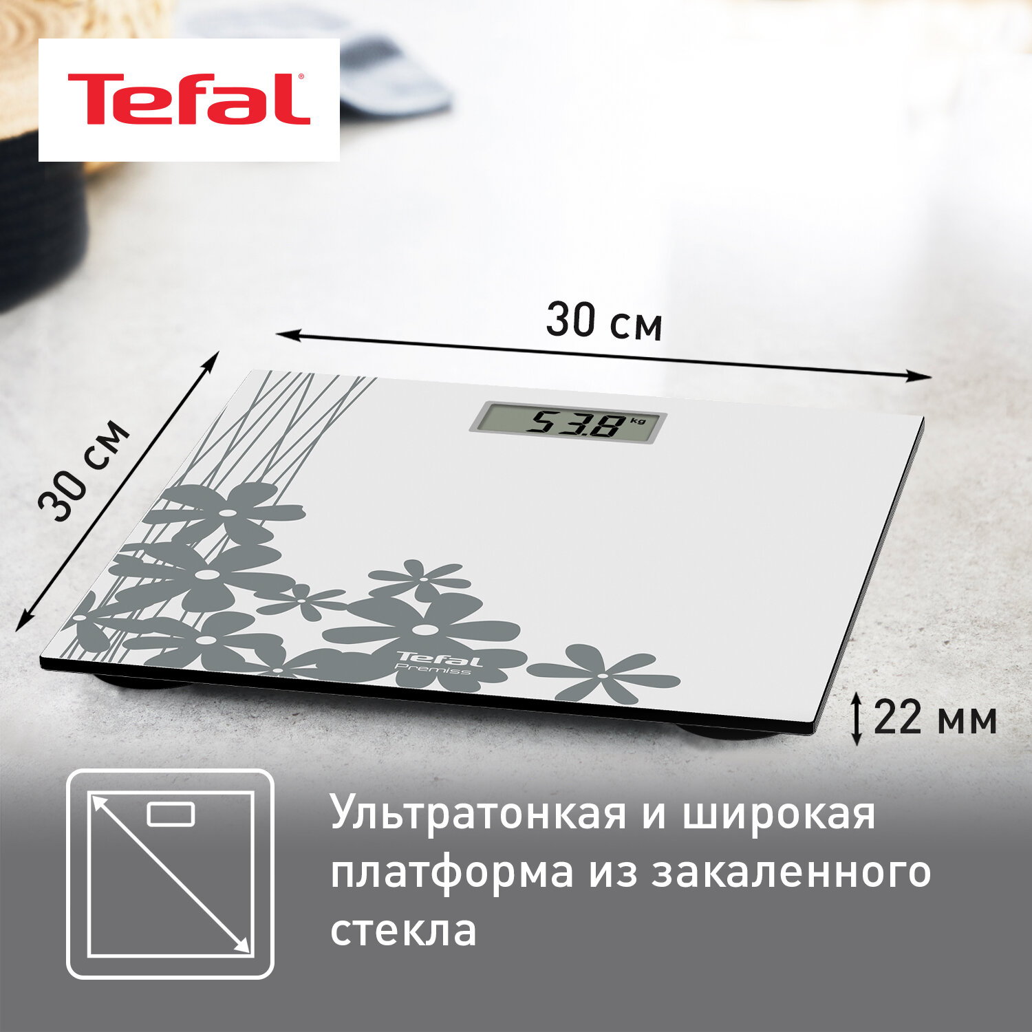 Весы напольные TEFAL Premiss Blossom Blue PP1433V0