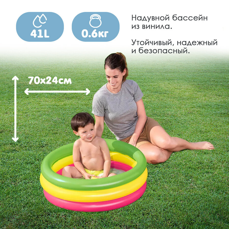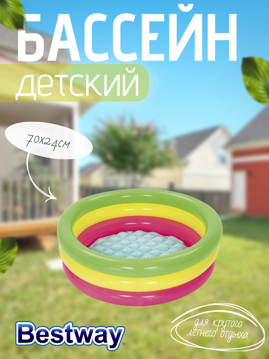 Круглый надувной бассейн Bestway, 70х24 см, мягкий, разноцветный