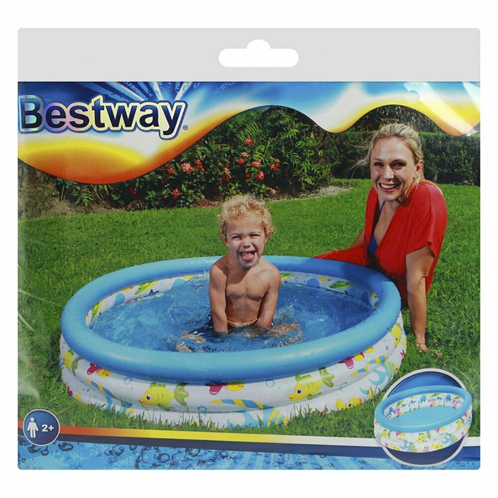 Бассейн надувной Bestway "компания" детский 61Х15 см, на 21 л, возраст 2+, материал ПВХ двухкольцевой борт, сборка за 10-15 мин, для пляжа, для дачи, синий / 1 шт