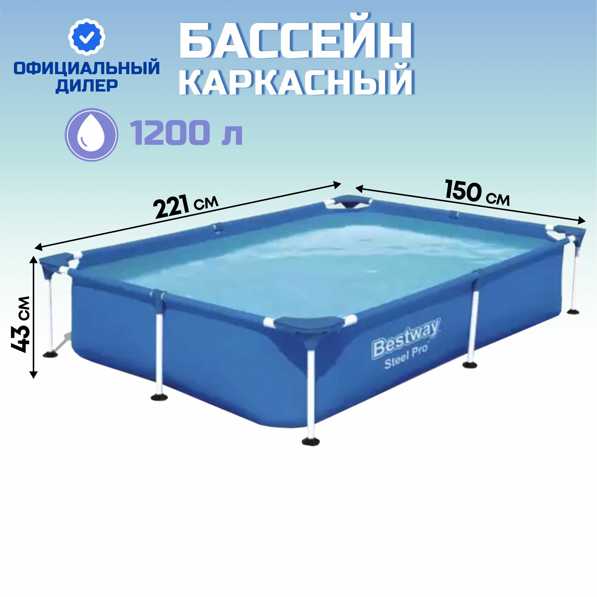 Бассейн каркасный Steel Pro, 221х150х43см, 1200л, 56401 Bestway