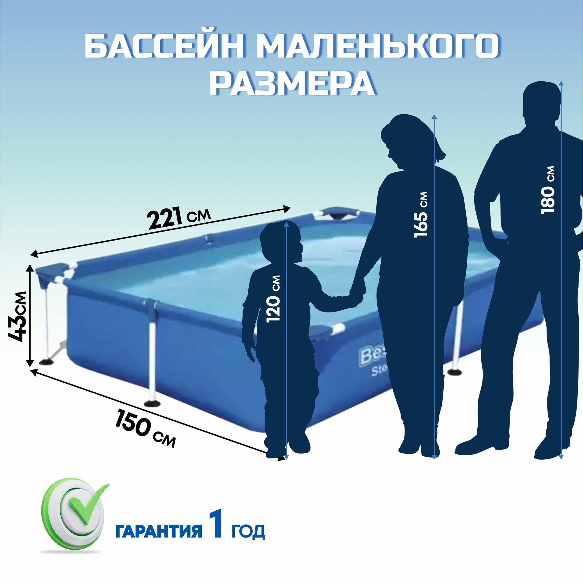 СохранитьБассейн каркасный прямоугольный Bestway Steel Pro, 221х150х43 см, 1200 л интересное: