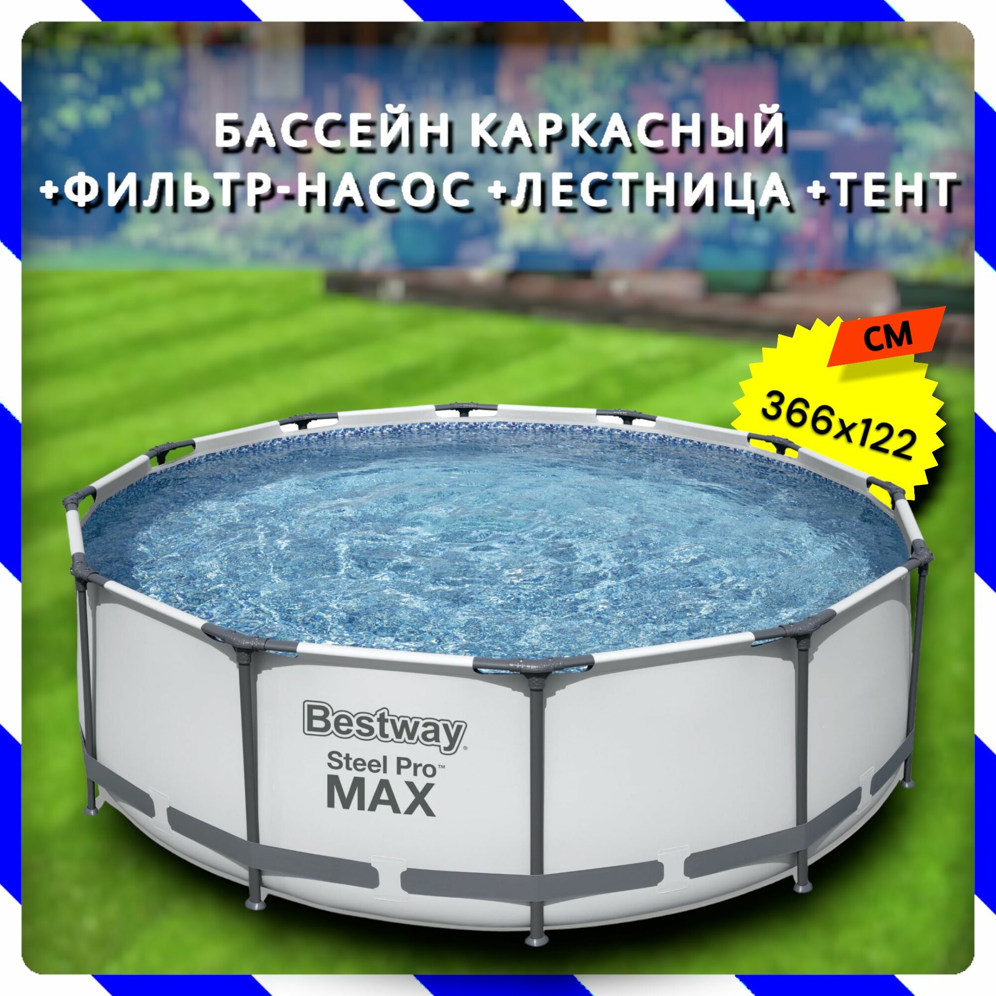 Каркасный бассейн Bestway 4.88х1.22 +фильтр-насос, тент, лестница