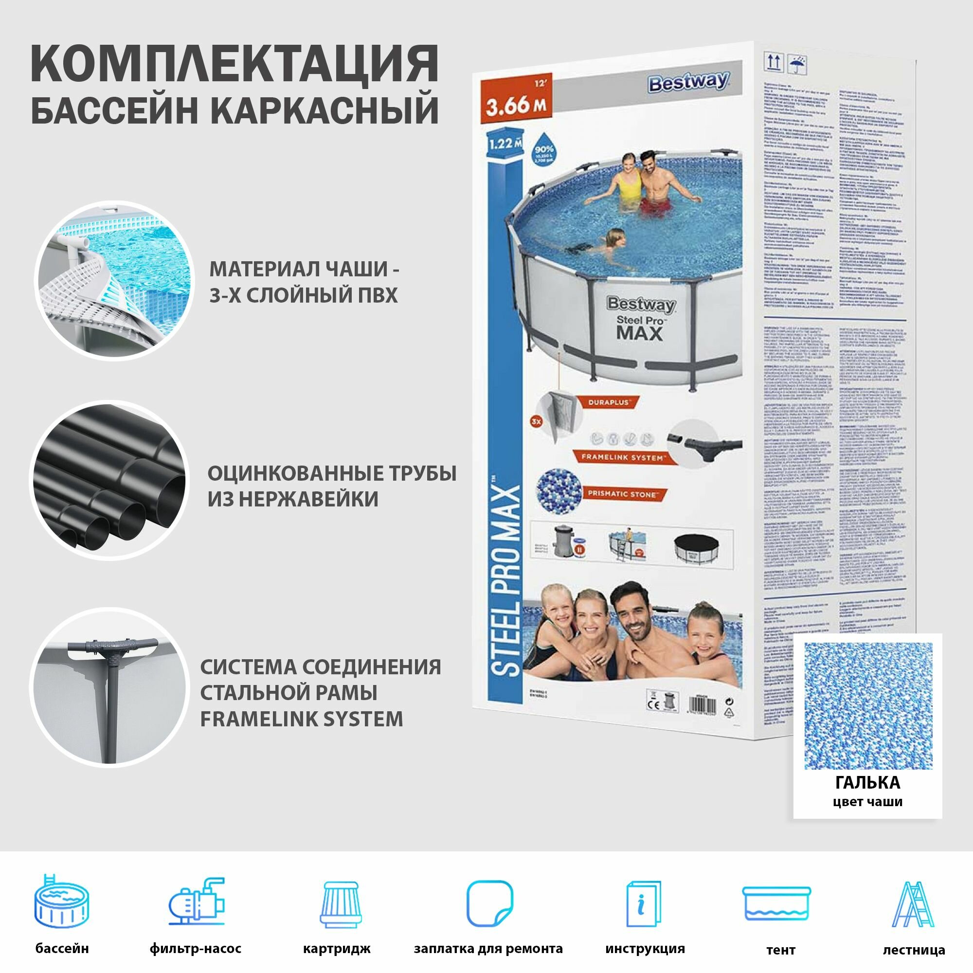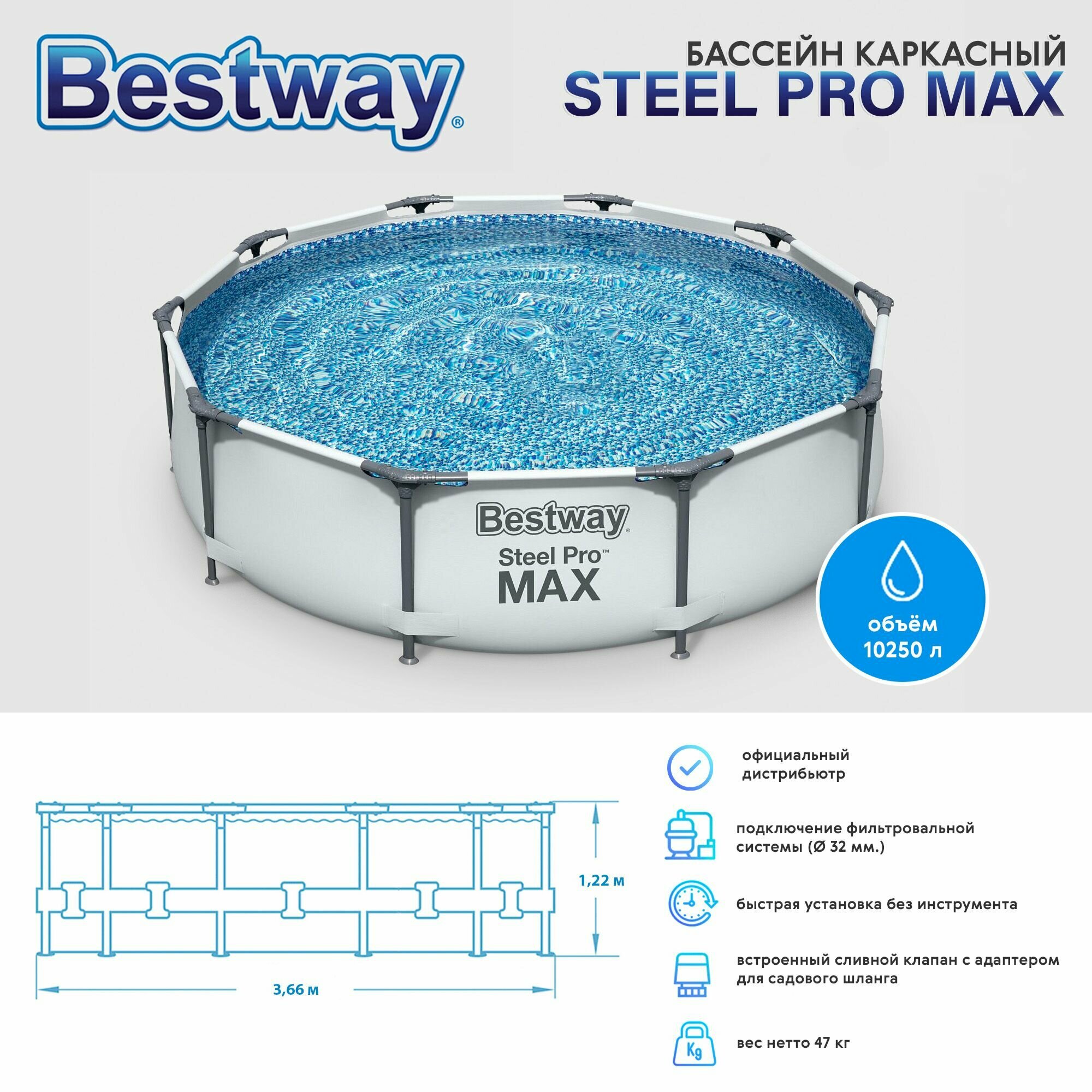 Каркасный бассейн BestWay 56420, круглый, 366х122 см, 10250 л