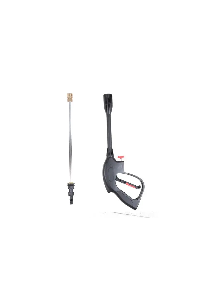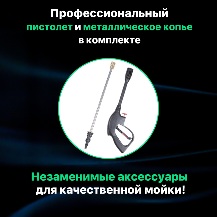 | Плюсы: | мягкий шланг, нормальный напор, удобный пистолет, надежные крепления насадок |