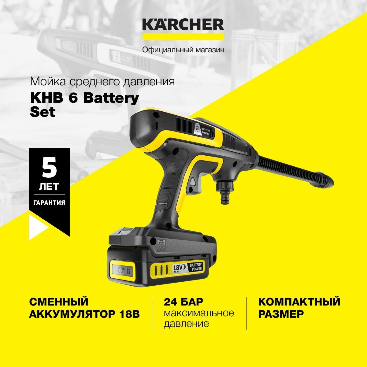 Аппарат среднего давления KARCHER KHB 6 Battery Set (аккумулятор входит в комплект)