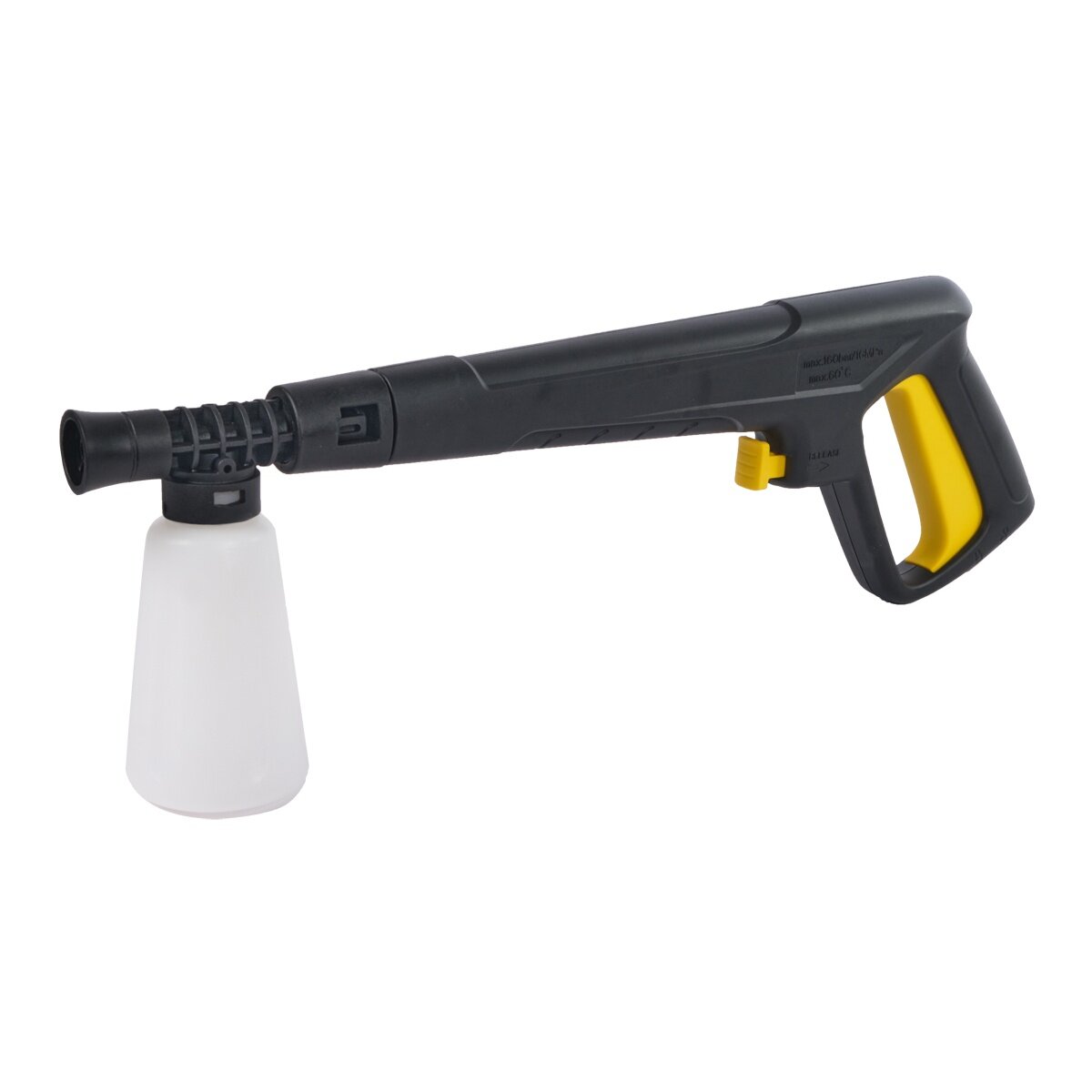 | Минусы: | Шланг высокого давления очень короткий. Шланг для подключения к водоснабжению или для взятия воды из ёмкости в комплект не входит. Пластиковые колёса для перевозки. Пистолет из держателя на корпусе вываливается. Трудно найти аксессуары. |