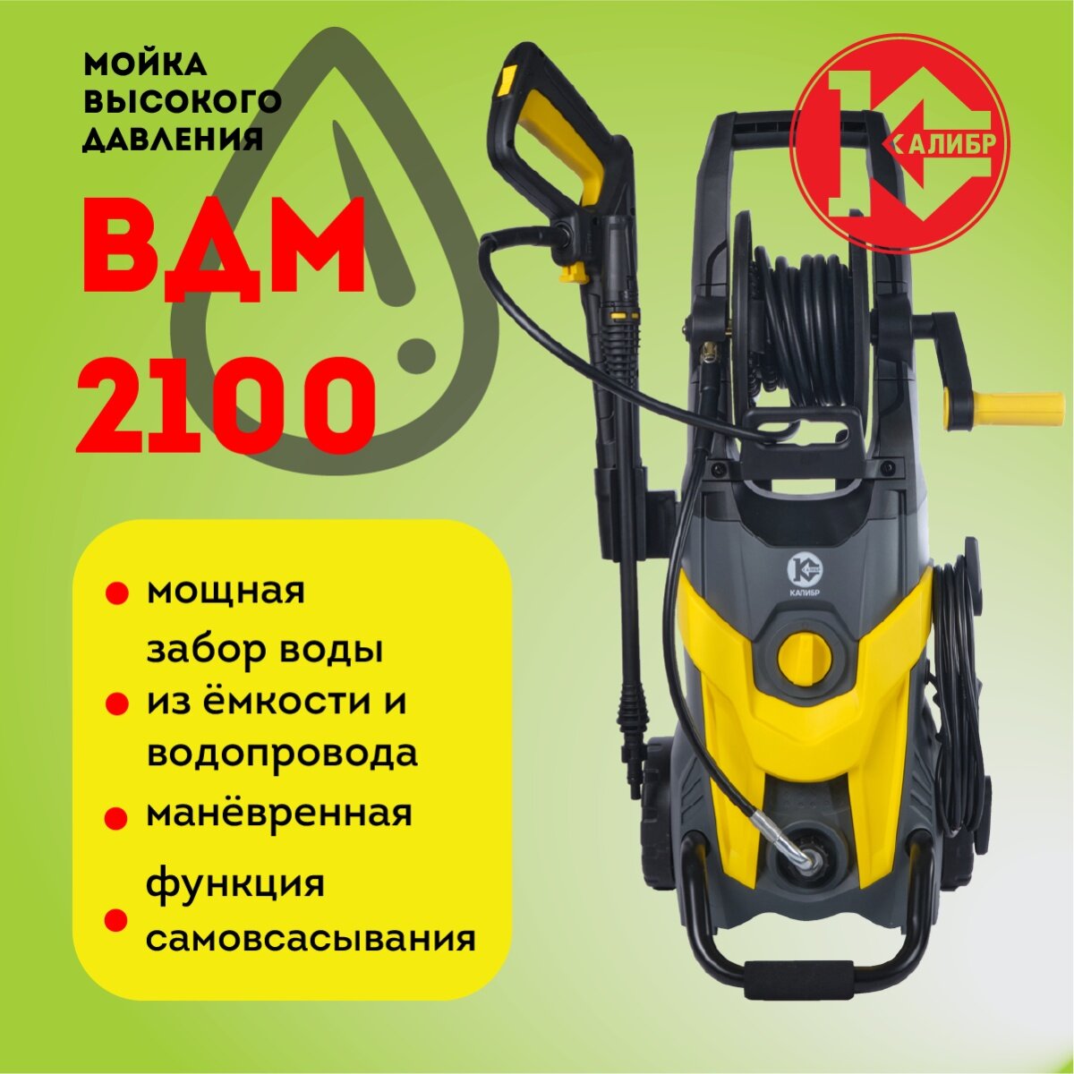 Мойка высокого давления Калибр ВДМ-2100 (2100 Вт, 140 Бар, самовсасывающая, на колесах) интересное:
