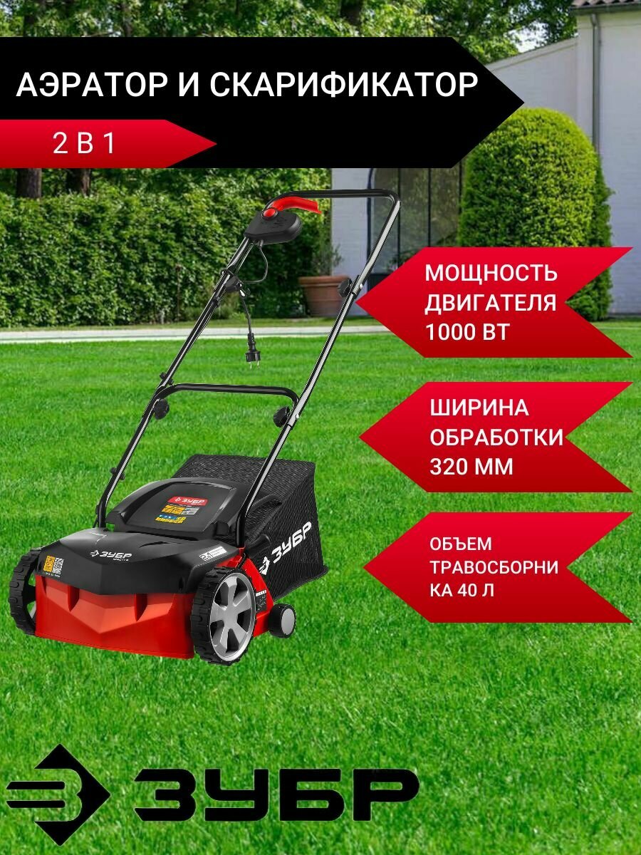 Купить ЗУБР 1000 Вт, 32 см, электрический скарификатор-аэратор (ЗСЭ-32-1000)