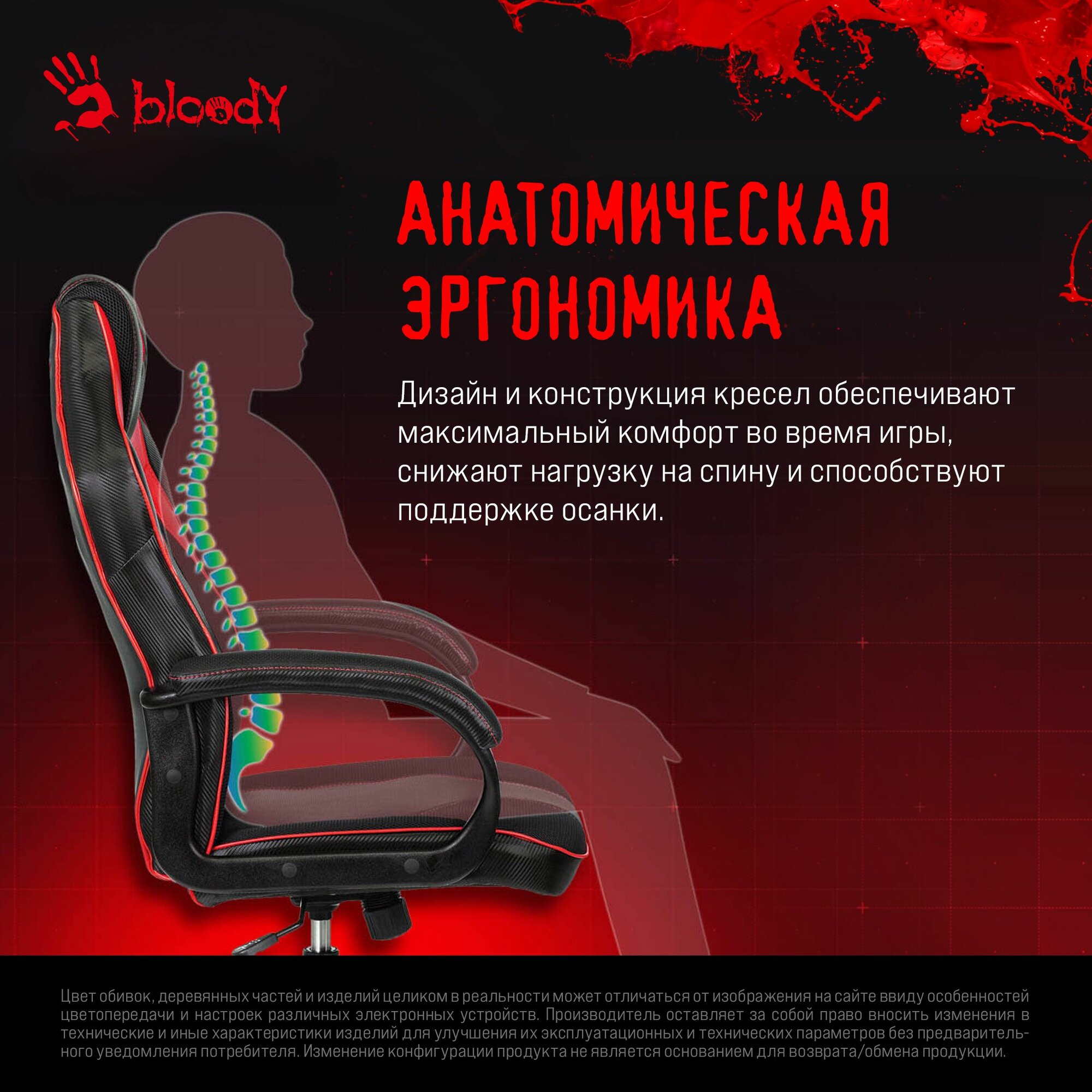 Кресло игровое A4Tech Bloody GC-140, обивка: эко.кожа/дышащая ткань, цвет: черный/красный