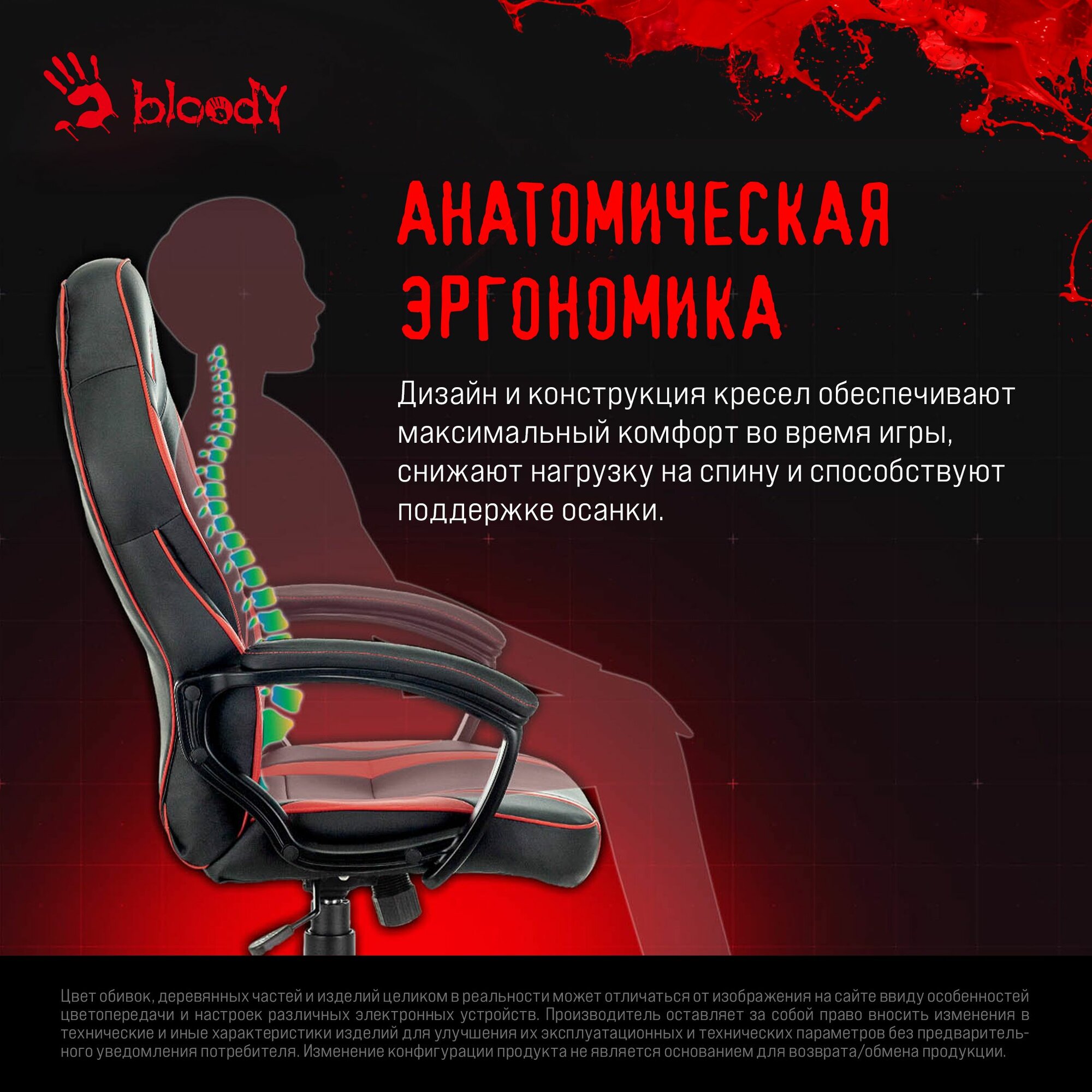 Игровое компьютерное кресло A4Tech Bloody GC-750 на колесиках, эко.кожа, 3D подлокотники, крестовина сталь, черный/красный