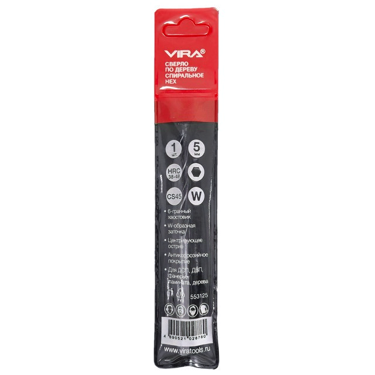 Купить Сверло спиральное по дереву HEX Vira 5x105, сталь 45, 1 штука