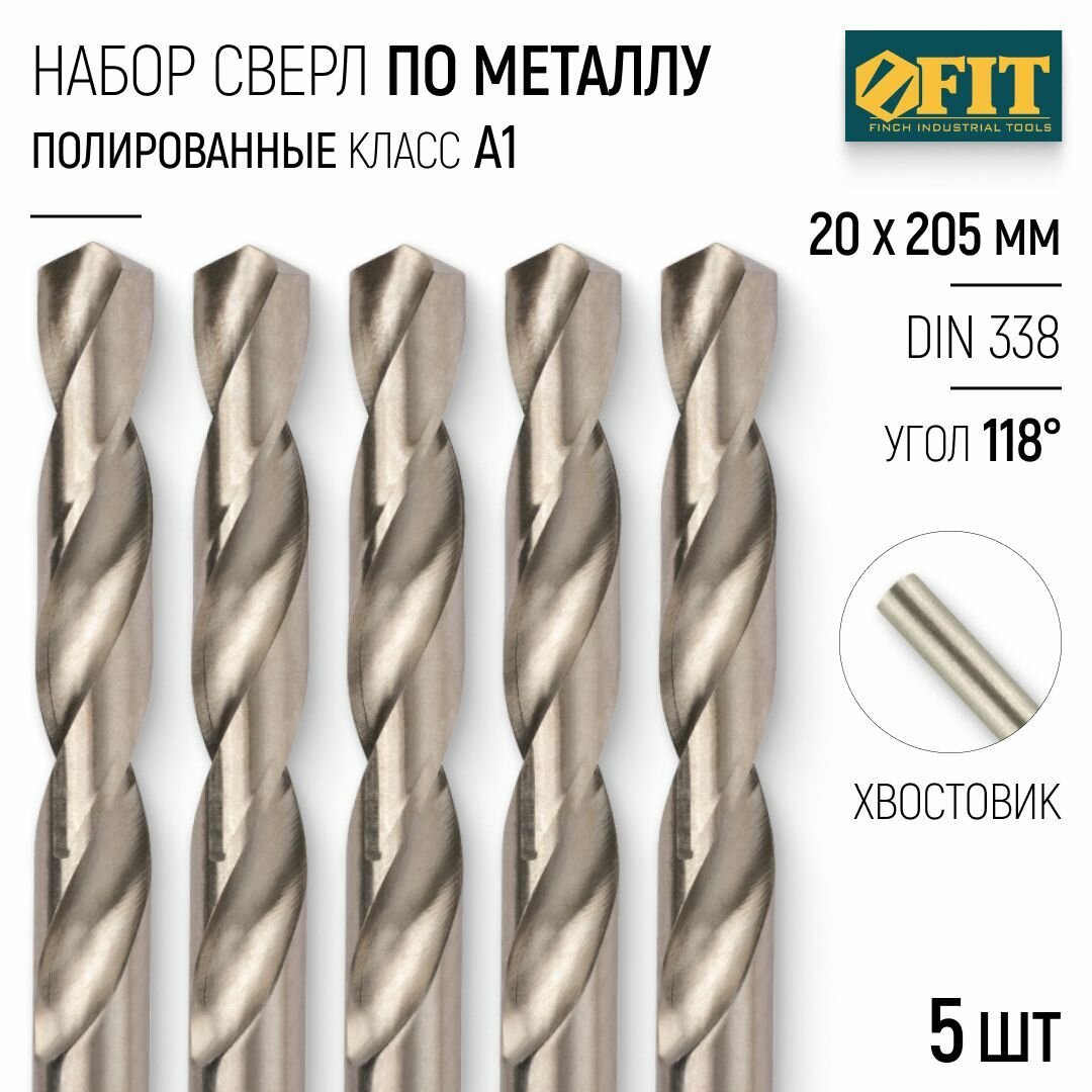 Сверло 5 шт по металлу (20х205 мм, HSS) FIT полированные
