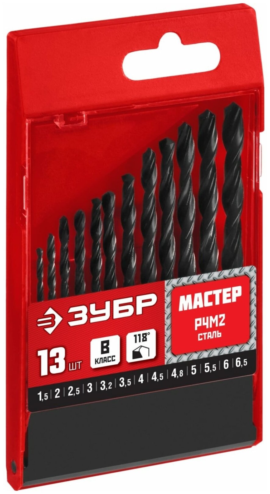 ЗУБР мастер 13шт(1.5-6.5мм), Набор сверл по металлу, сталь Р4М2, класс В, 29605-H13