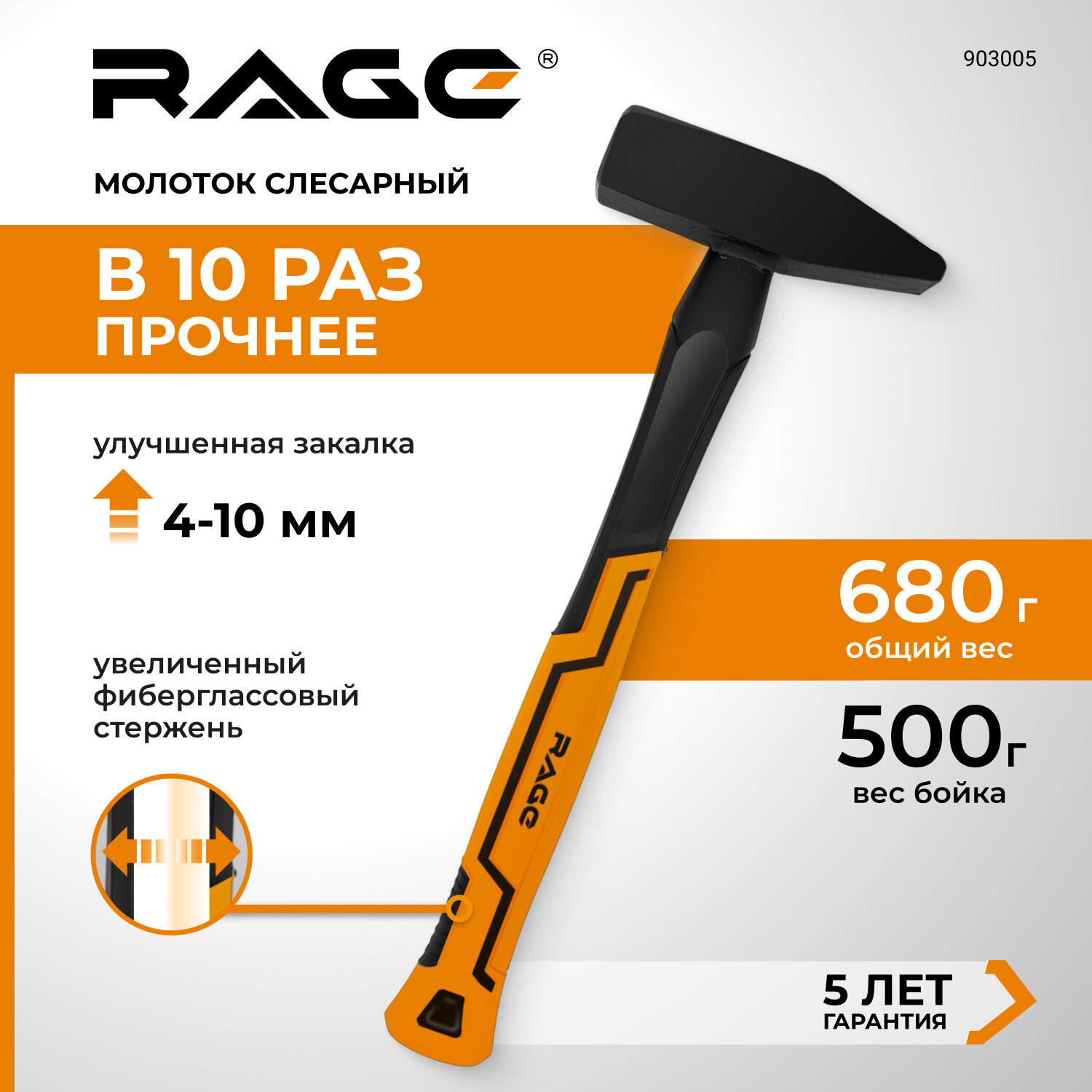 Молоток слесарный Rage 903005 фиберглассовая рукоятка 500 г