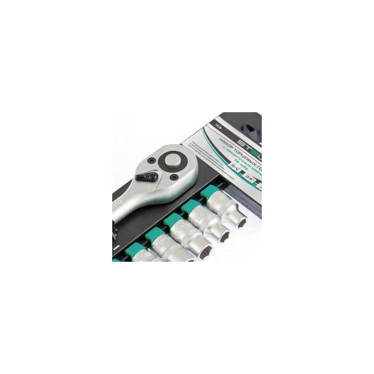 Набор торцевых головок, 3/8, головки 7-22 мм, с трещоточным ключом, CrV, 11 предметов Stels