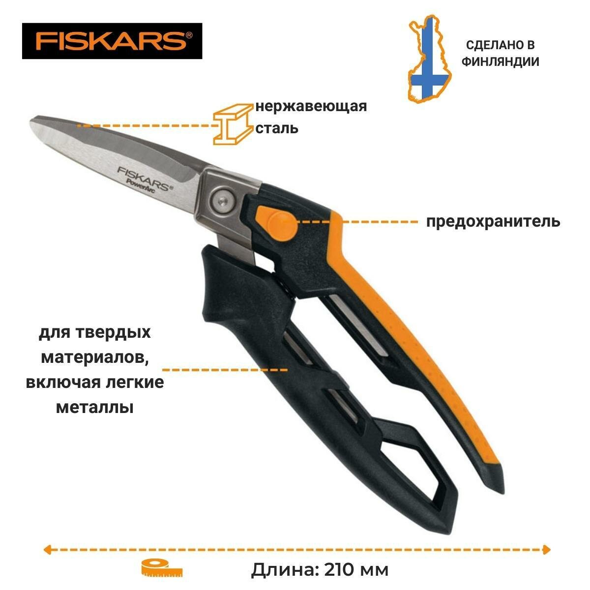 Ножницы универсальные Fiskars PowerArc, 210 мм