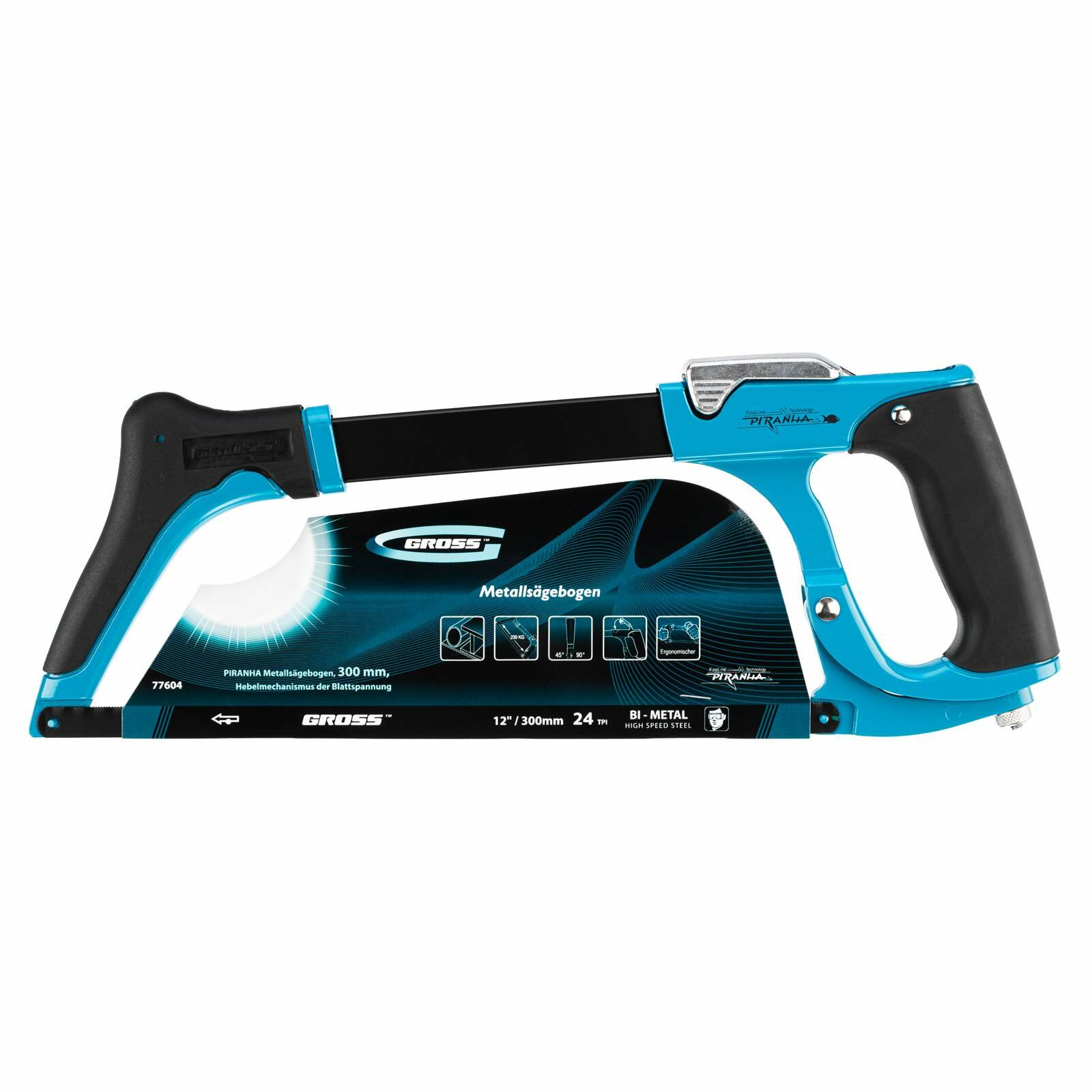 GROSS Ножовка по металлу "PIRANHA",300 мм, рычажный механизм натяжения полотна// 77604
