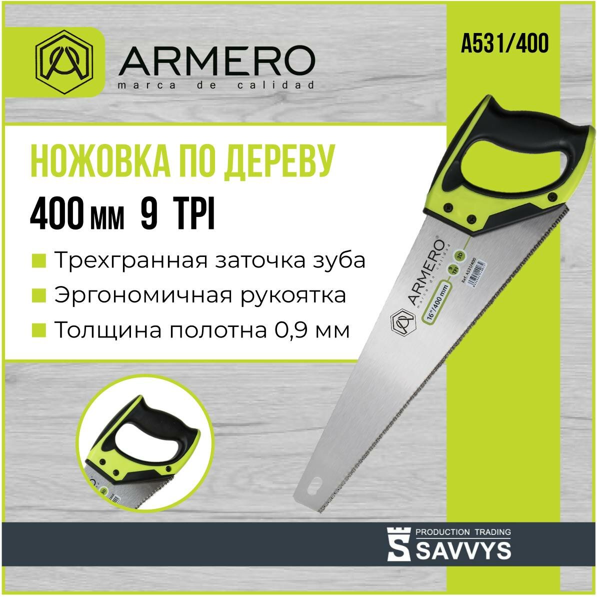Ножовка Armero A531/400, 400 мм, 9 TPI, с 3D заточкой.