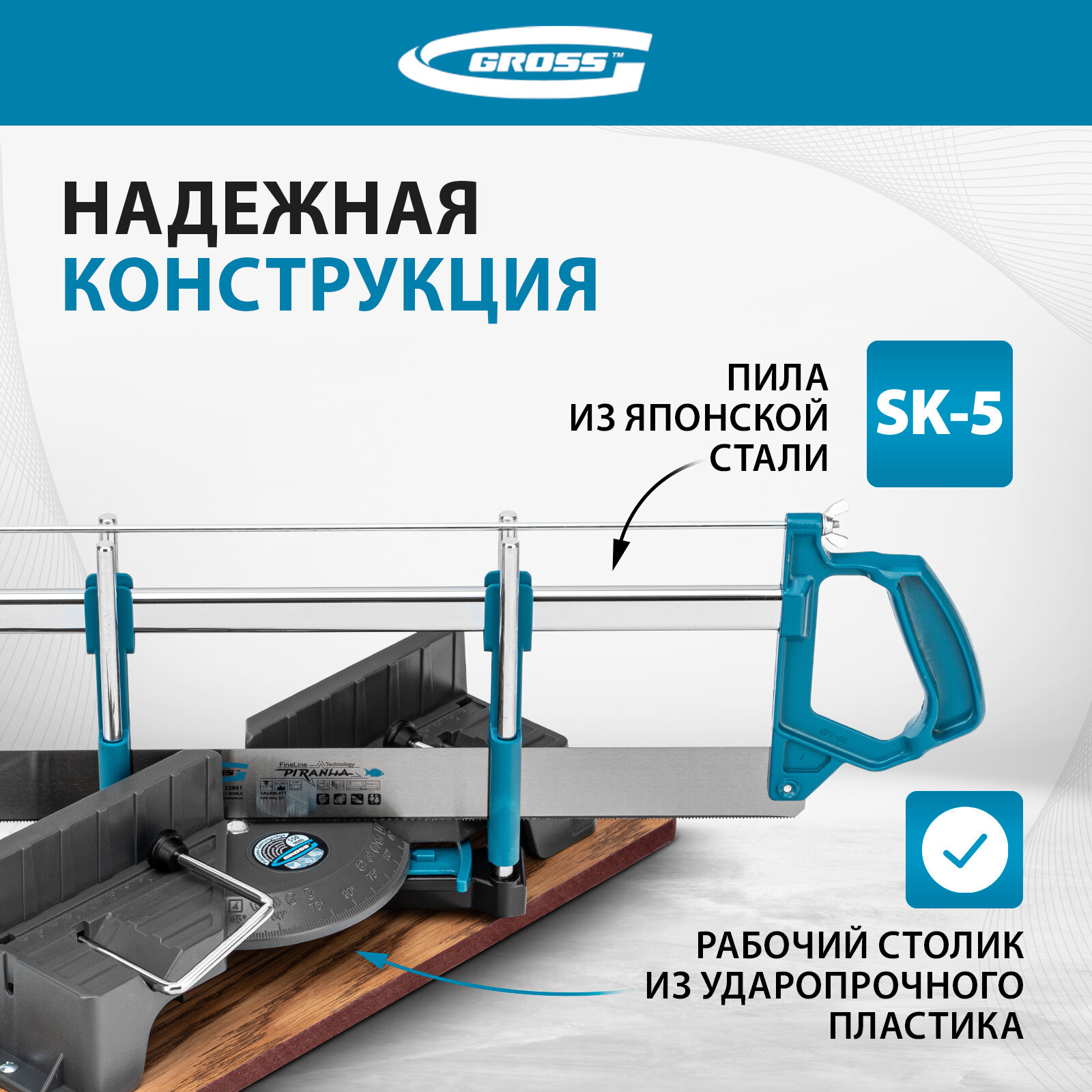 Прецизионное стусло, пила - 550мм, 2 прижимные струбцины, ограничительный упор GROSS 22757