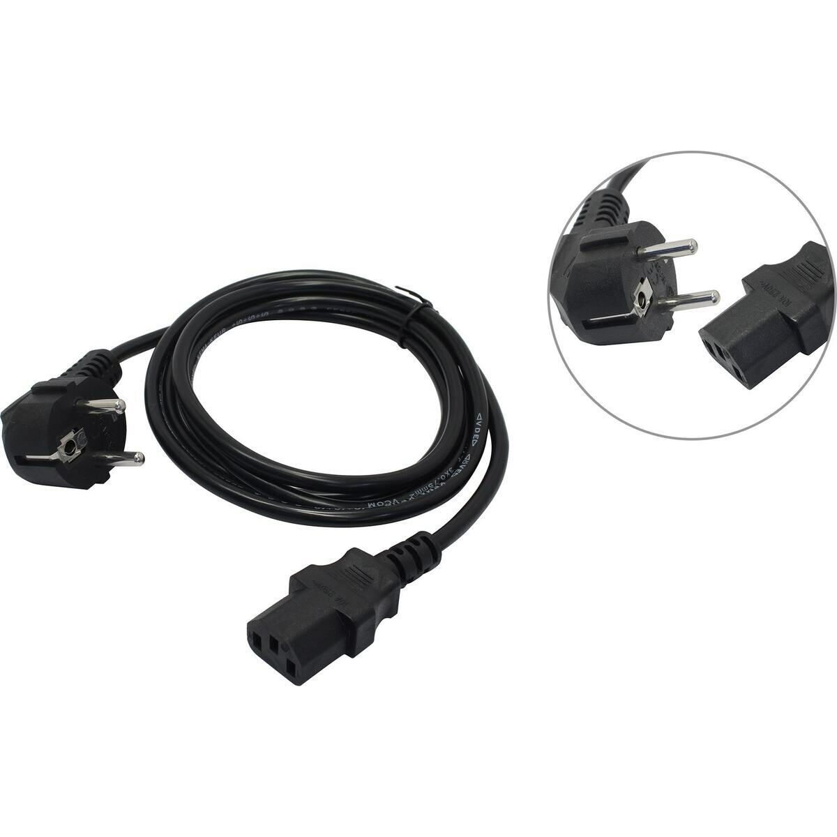 VCOM Кабель компьютер розетка 220V /угловая Евровилка/ VDE 3G0, CE021-CU0.75-1.8M-O