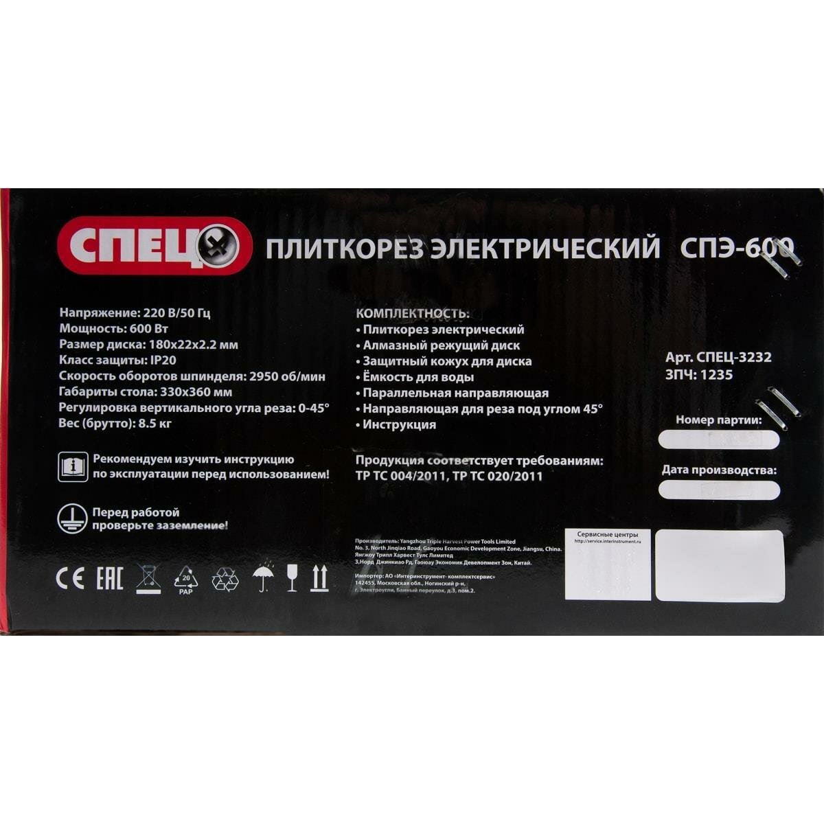 Плиткорез спец СПЭ-600, 600Вт, 2950 об/мин, диск 180/СПЕЦ-3232/СПЕЦ-0513004