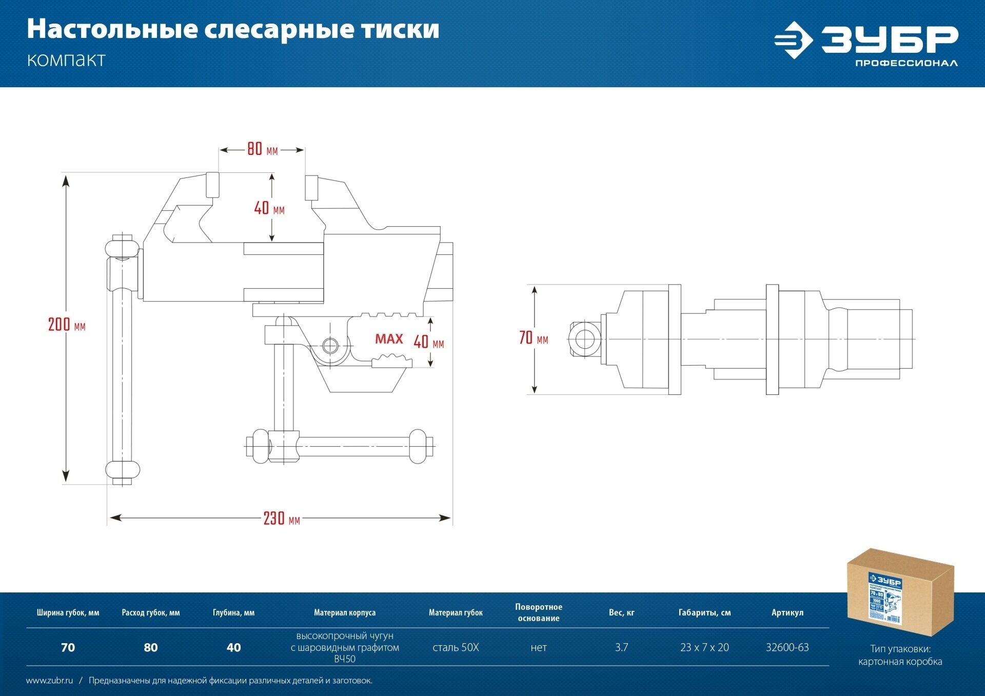 ЗУБР эксперт со струбциной, 63 мм
