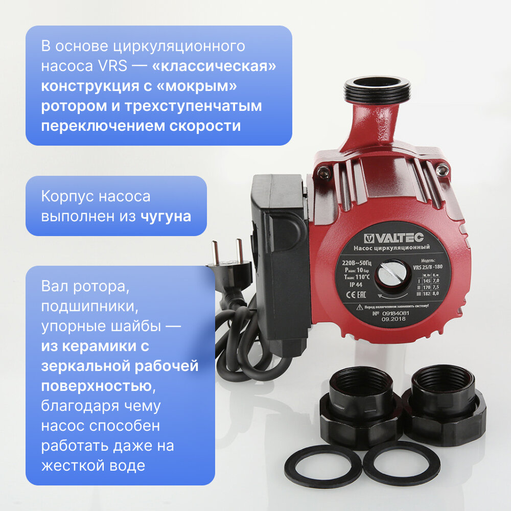 Циркуляционный насос Valtec VRS 25/8-180 с гайками VRS.258.18.0